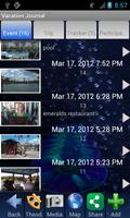 Создайте события в своем отпуске, документирующие важные исторические сайты, посещаемые развлечения, такие как концерты, спортивные мероприятия, оперы и т. Д., Отели, где вы остановились, детали туров и т. Д. Каждое событие отмечено вдоль вашего GPS -трека с PIN -код на картах Google, позволяющих мгновенный доступ к захваченным медиа.